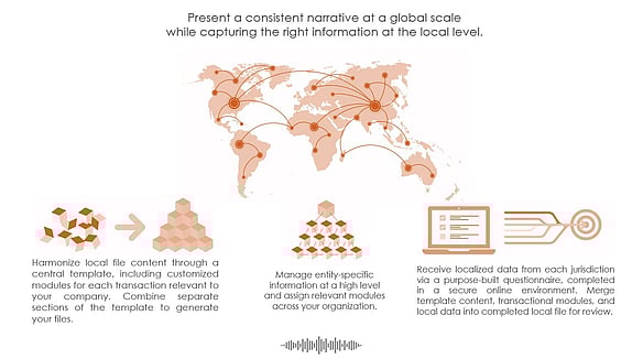 Our TP documentation management solutions are designed to create and manage master files, local files and intercompany agreements. For an example on how we set up our TP Documentation solutions, join us for our Webinar on TP Documentation Automation in Workiva®, or you can watch an earlier webinar showcasing our TP Documentation solution in VENA® to have a brief idea of our approach to documentation automation. Please feel welcome to contact us to see a demonstration of the options you have, have a conversation about your vendor selection process, or simply talk about the possibilities our various solutions have to offer!